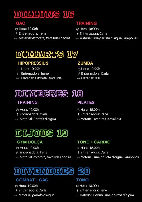 I aquelles que no puguin coincidir en cap horari, no us preocupeu: totes les classes queden gravades i les podreu fer en diferit en el moment que desitgeu.