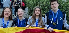 La Bruna Gomila, la Maria Abarca i l'Ivet Sullà amb la selecció catalana femenina després d'imposar-se a Andalusia (11-1).