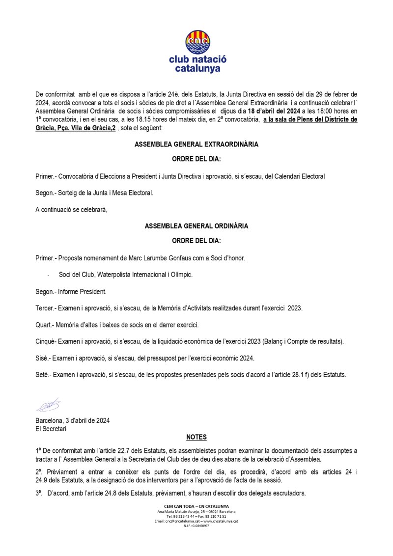 Convocatòria Assemblea Ordinària i Extraordinària